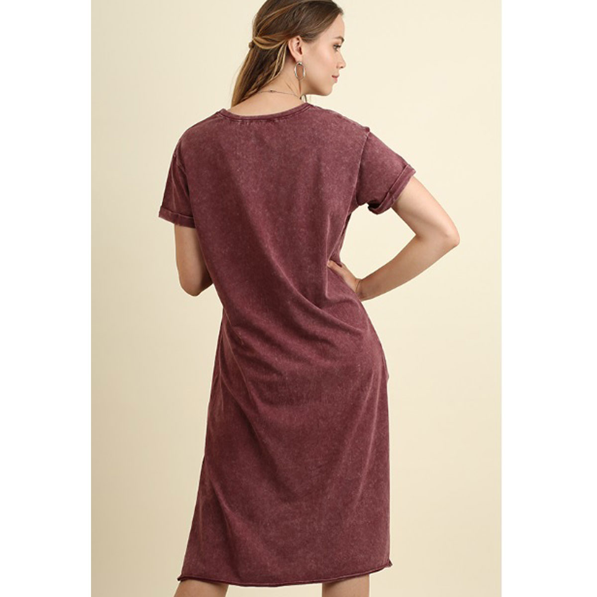 Mineral Washed Gathered Tee Dress with High Low He