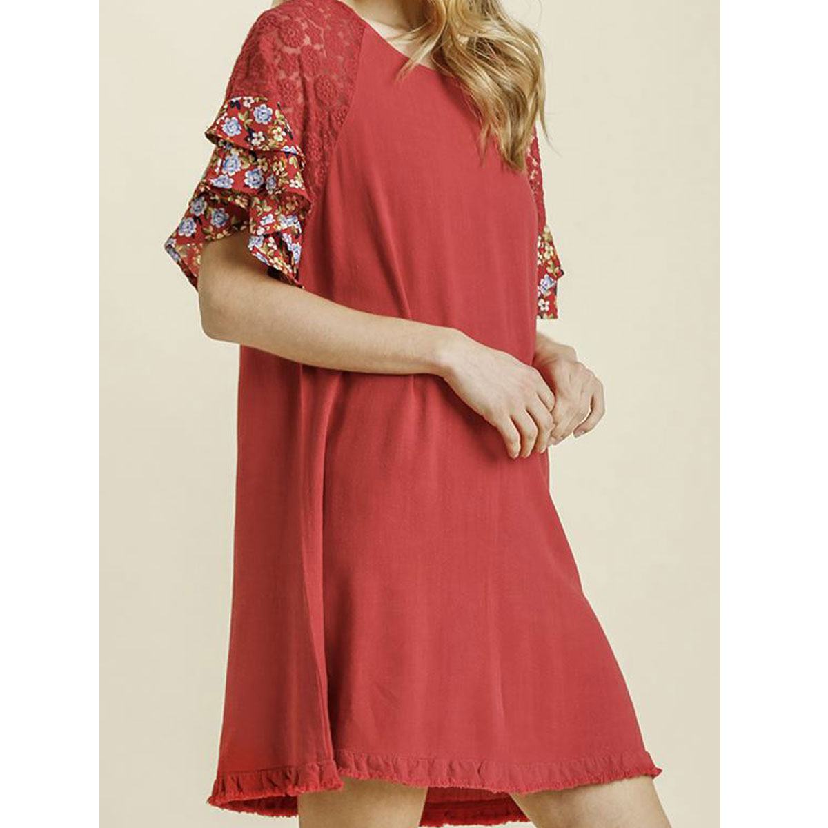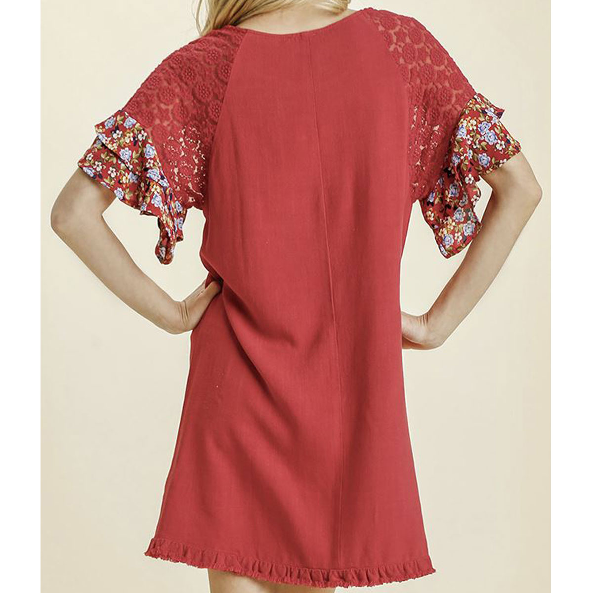 Floral Lace Shoulder Print Layered Ruffle Sleeve