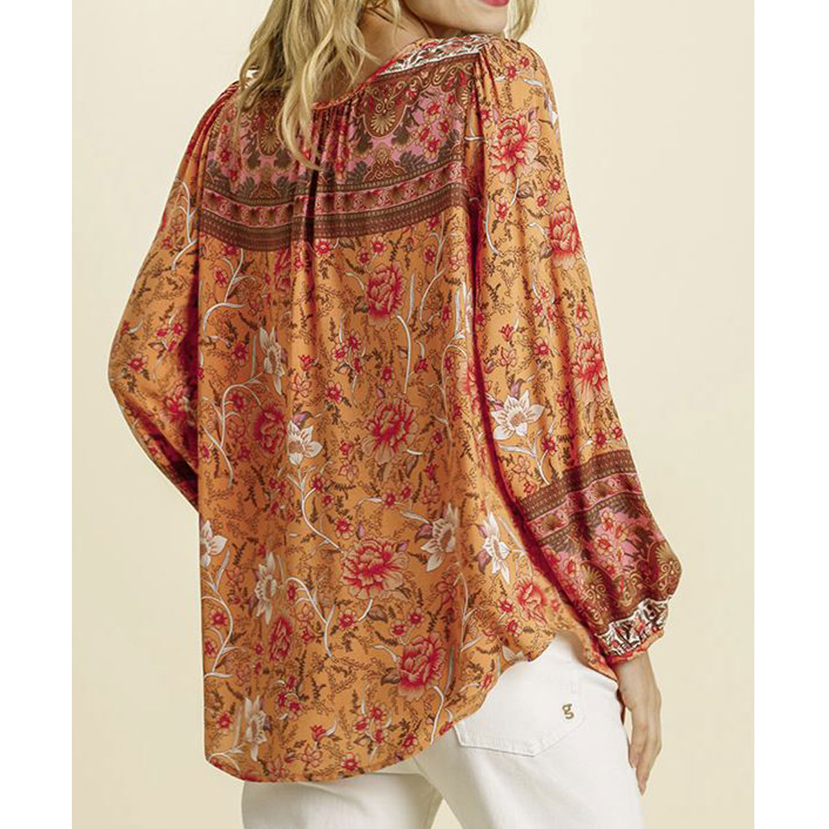 Mixed Floral Border Print Long Puff Sleeve