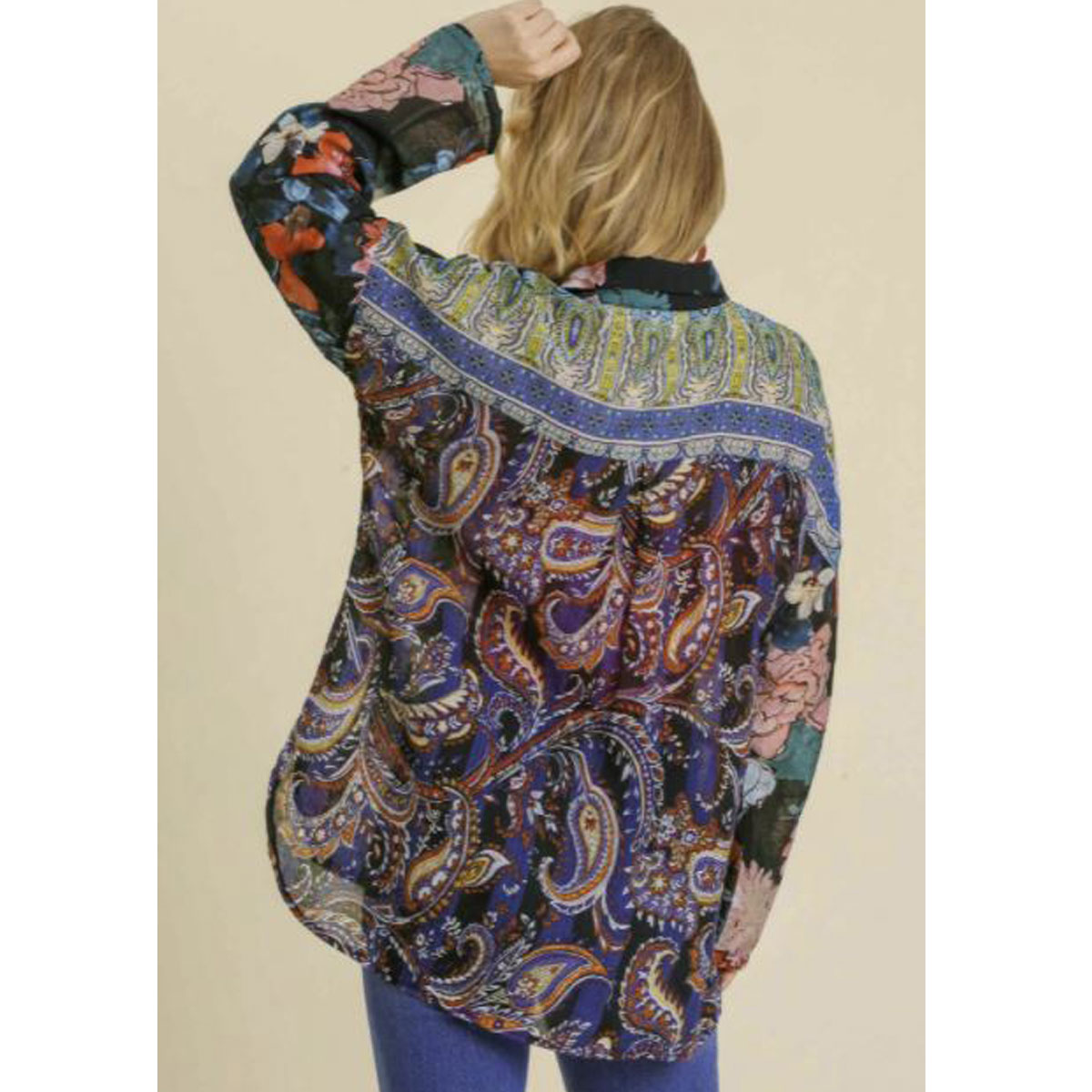 Sheer Mixed Print Button Up Top