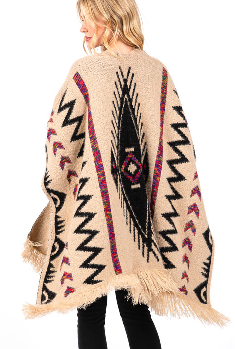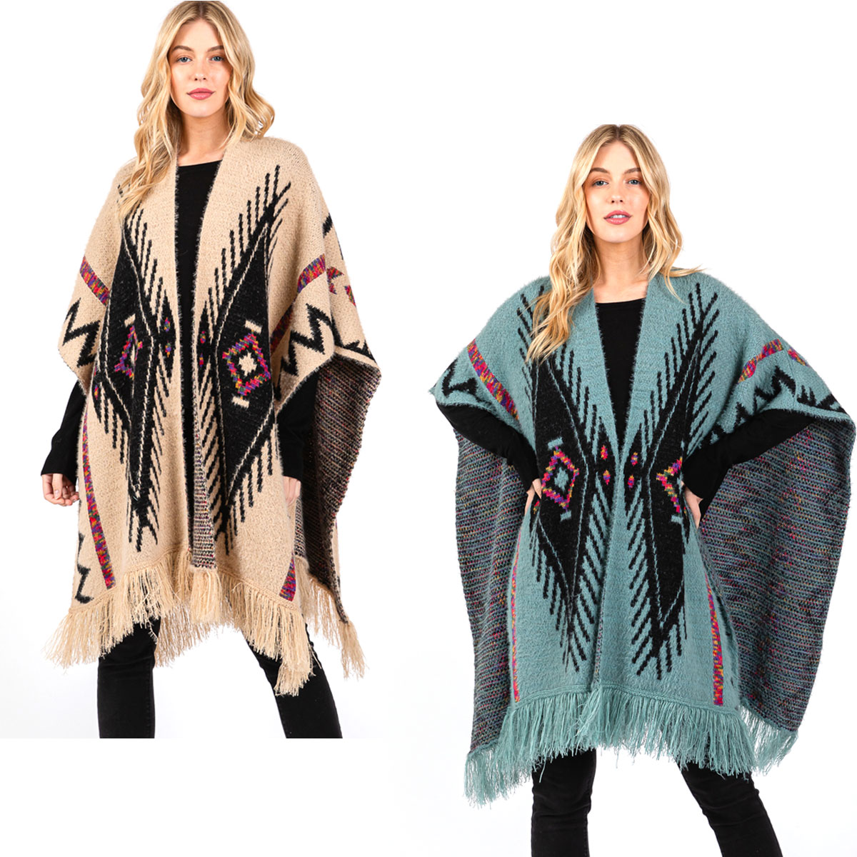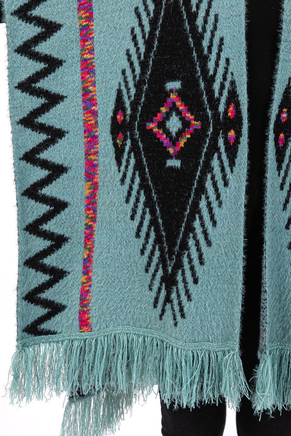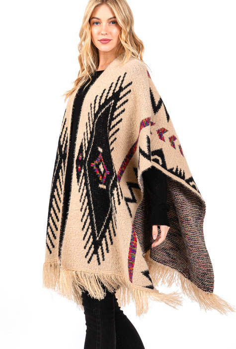 Fuzzy Aztec pattern Tassel Knit Ruana