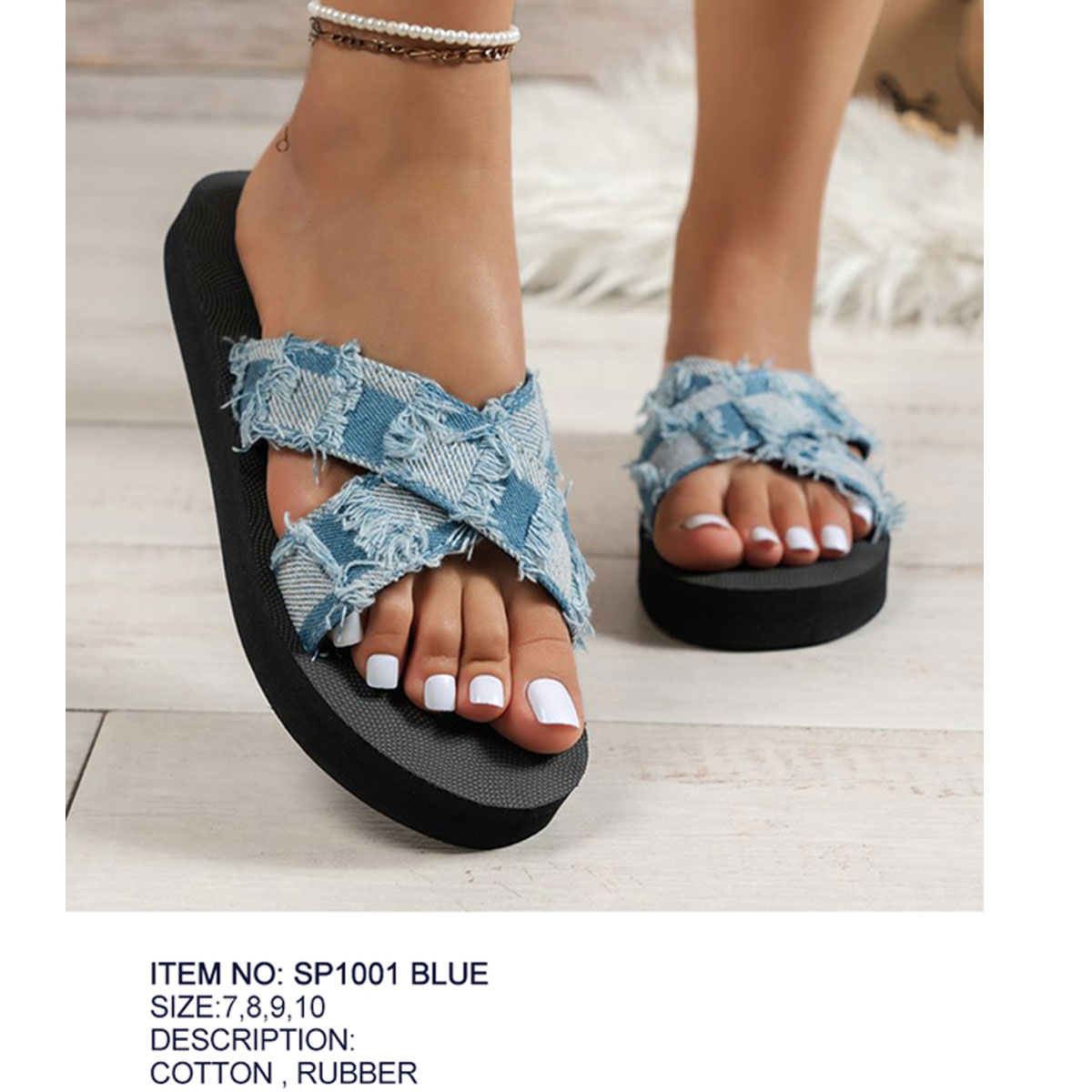 worn denim look slipper