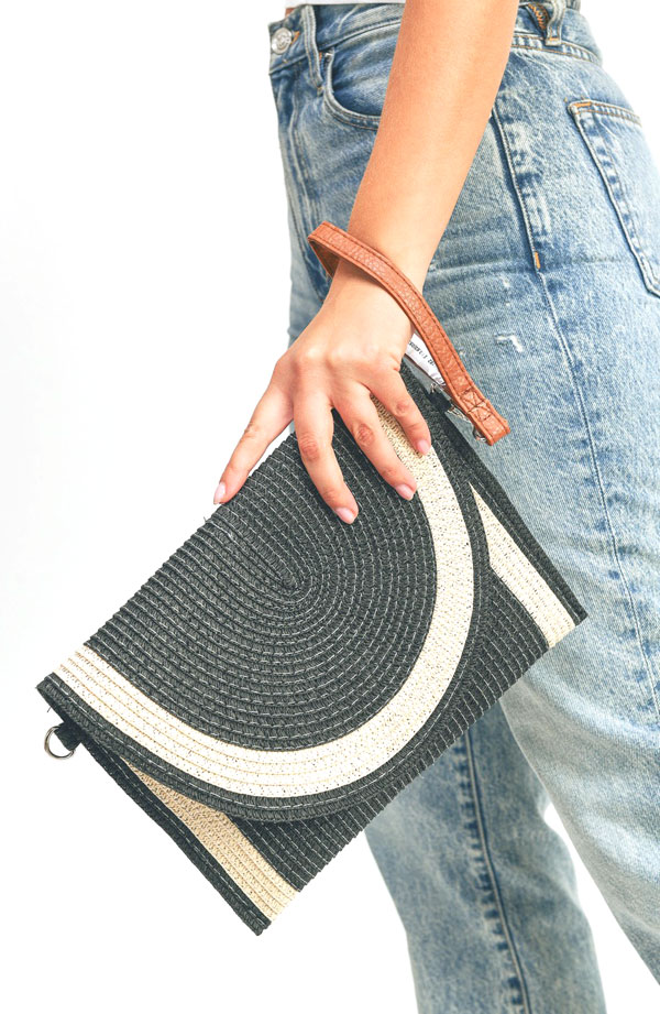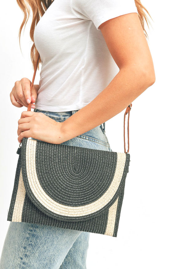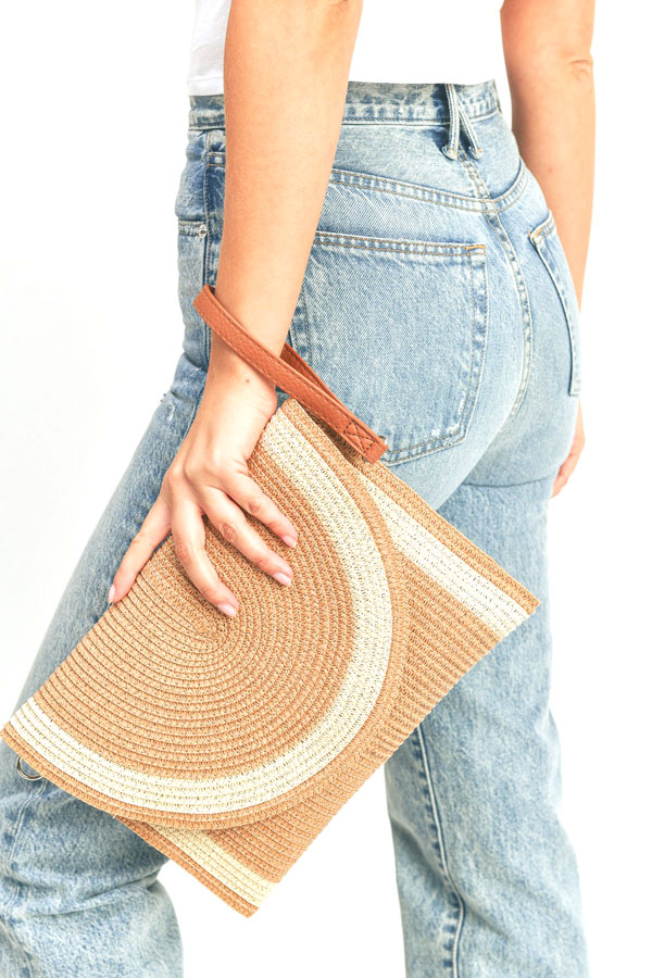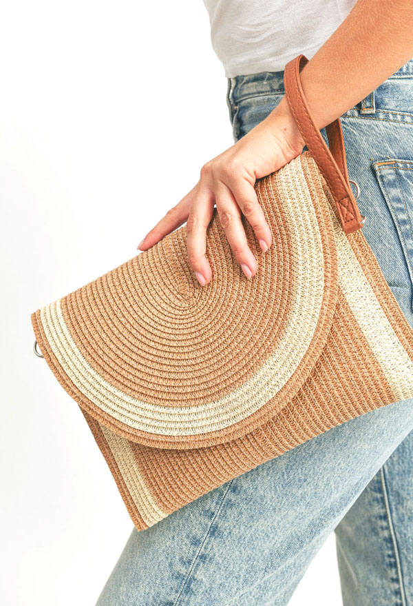 two tone straw clutch & crossbody bag