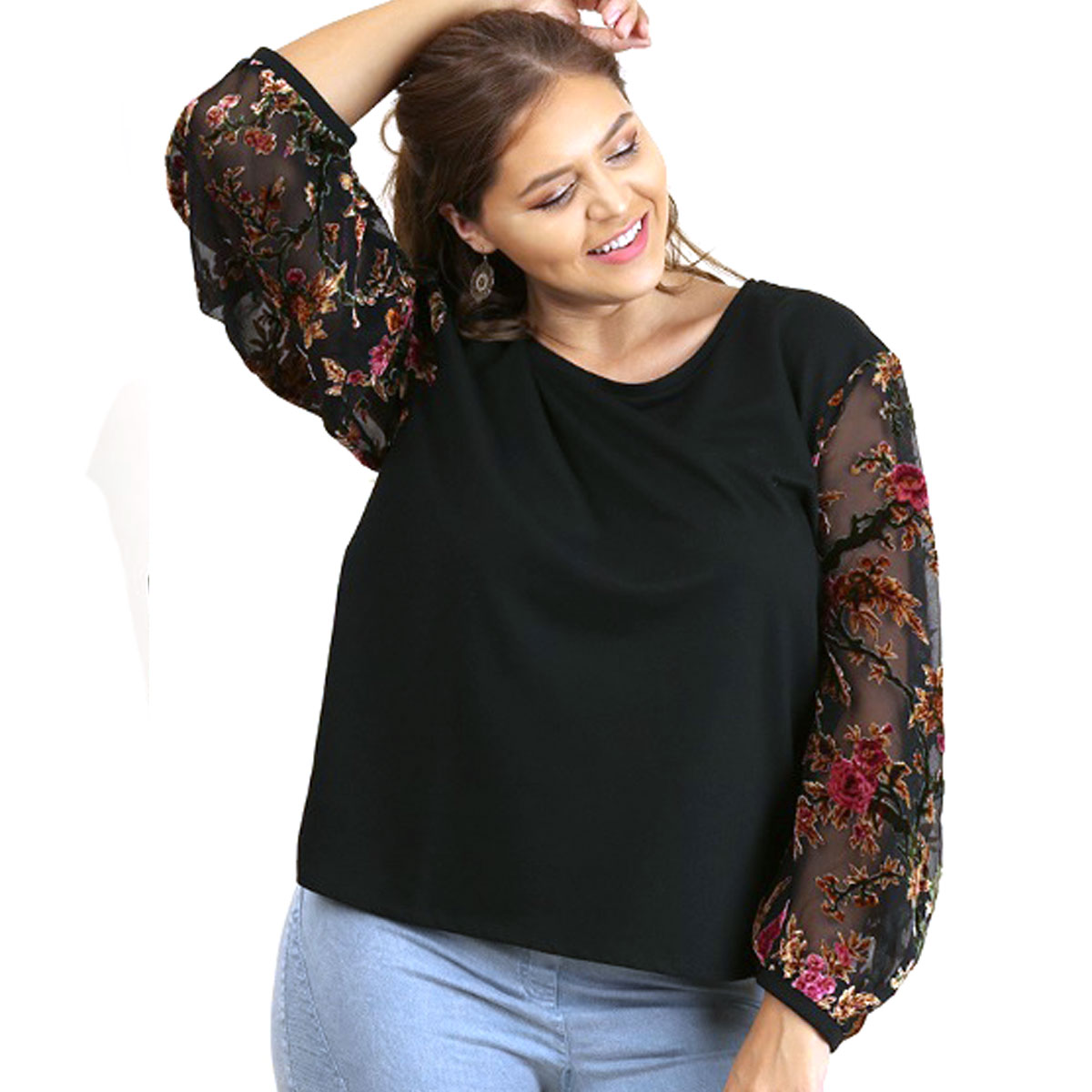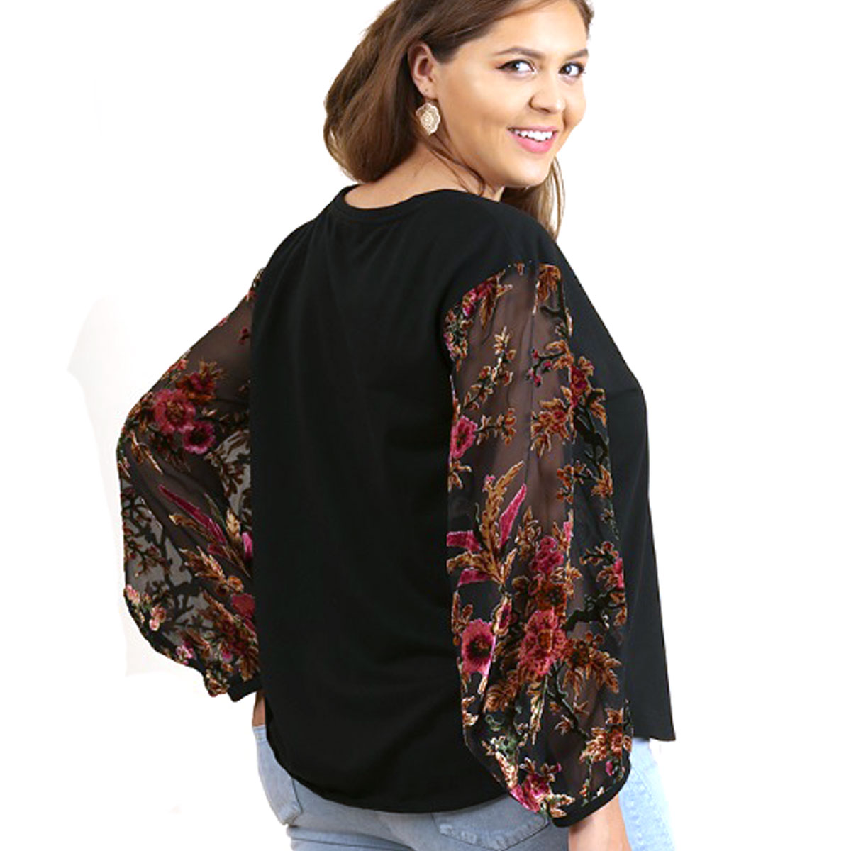 Floral Velvet Burnout Sheer Balloon Sleeves