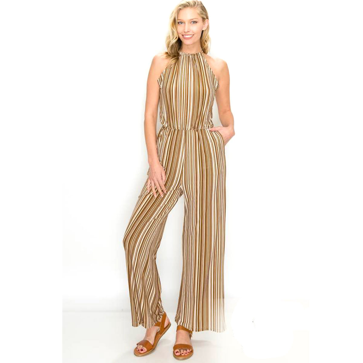 Halterneck Stripe Jumpsuit
