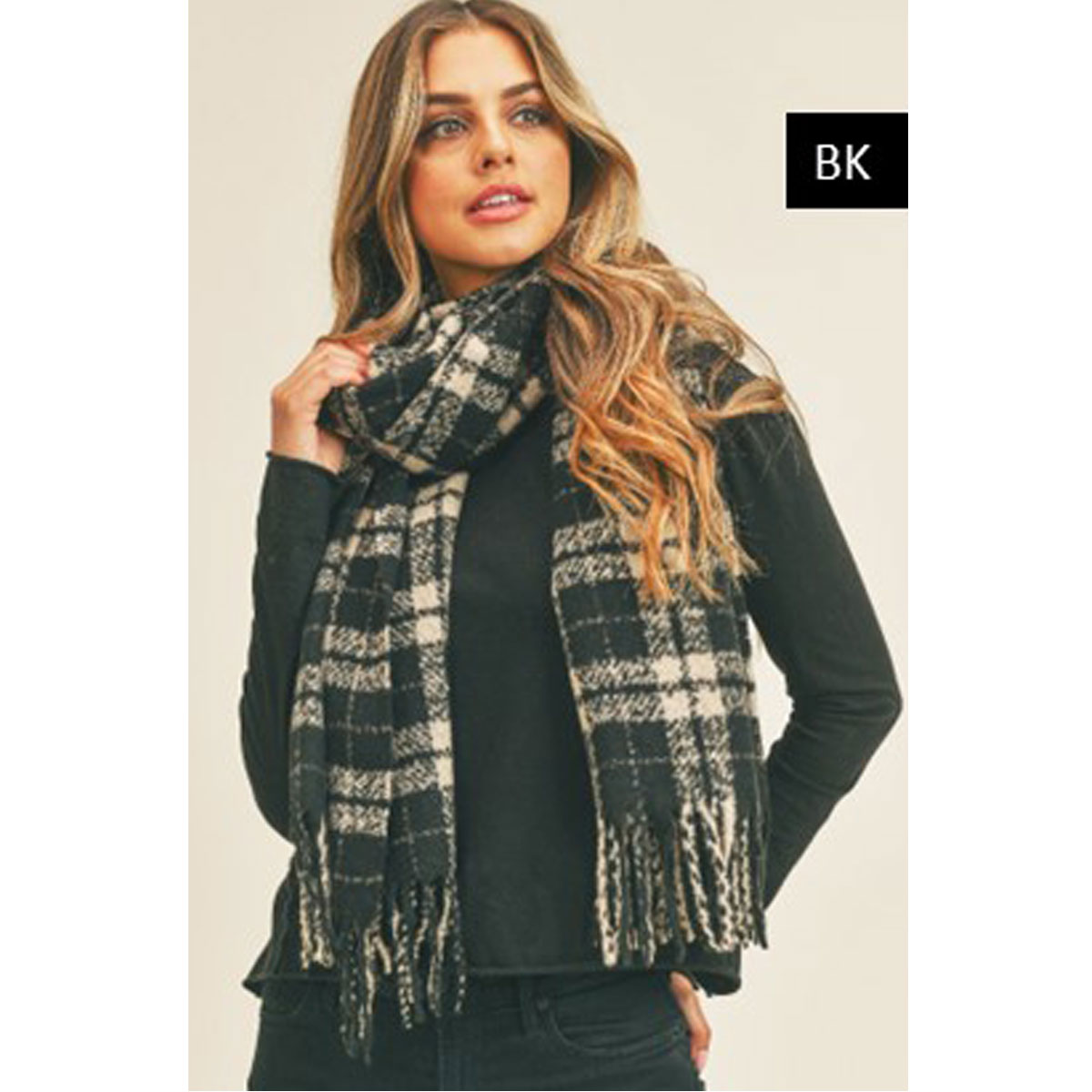 Checker plaid oblong scarf