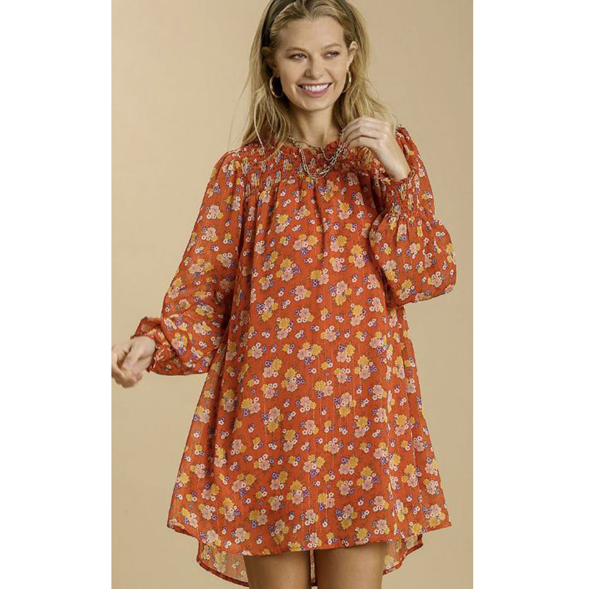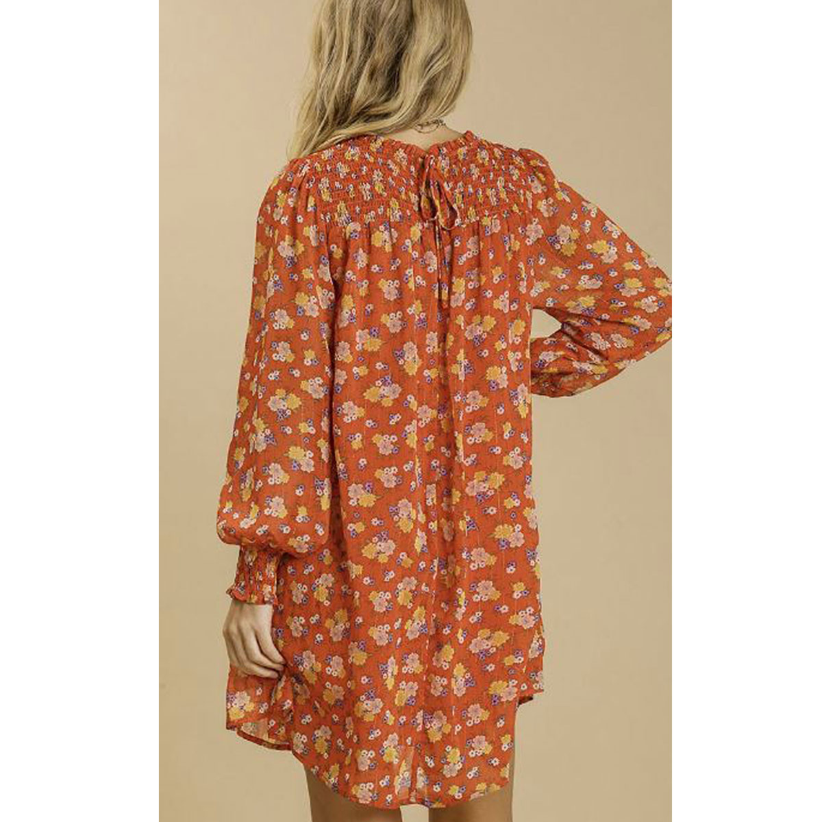 Smocked Round Neck & Back Tie with Lining