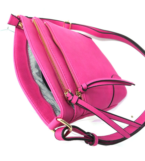 top zipper closure % long adj shoulder strap